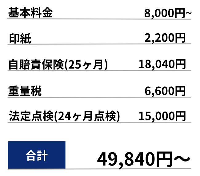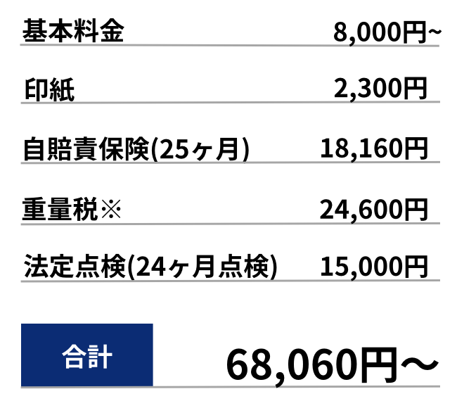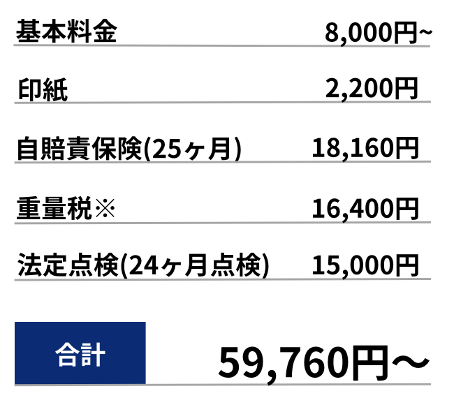 ※重量税は車種年式によって変わります。詳しい重量税はこちら→